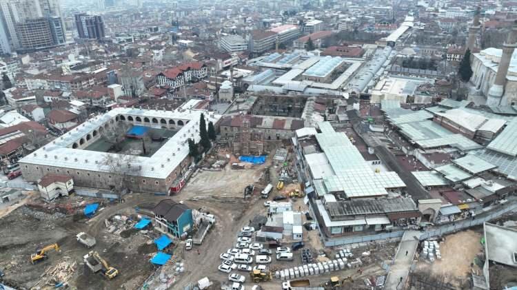 Toplam 38 bina ve 15 işyerinin yıkımını gerçekleştirdik. Bursalıların yıllardır hayalini kurduğu Tarihî Çarşı ve Hanlar Bölgesi’nin önünün açılması bu binaların yıkılmasıyla gerçekleşmiş oldu. Uygulama projesiyle 9 bin metrekaresi yeşil alan ve peyzaj düzenlemelerinden oluşan, 19 bin metrekare alan tarihî bölgeye kazandırılıyor” şeklinde konuştu.
