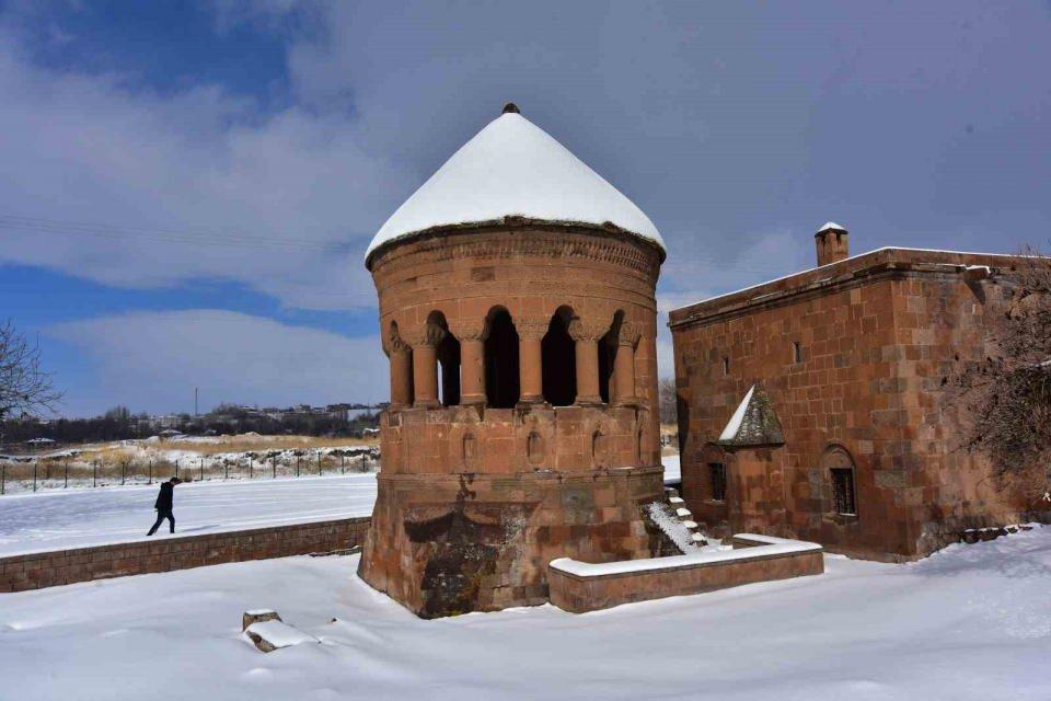 Ahlat’ın tarihi mekanlarından kartpostallık kar manzaraları