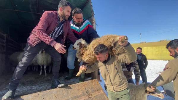 Omuzlarında getirdikleri hayvanları depremzedeler için bağışladılar