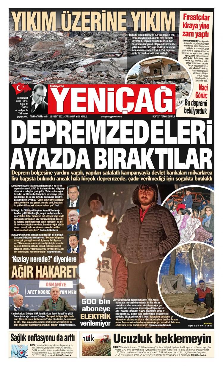 22 Şubat Çarşamba gazete manşetleri - Hatay'ı tuzlu kum yıktı: Felaket göz göre göre geldi!