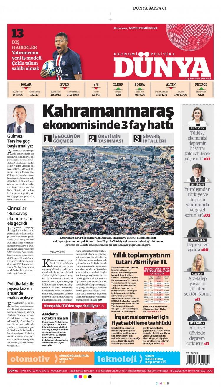 27 Şubat Pazartesi gazete manşetleri - Betondaki ölüm tuzağı! Türkiye'de yüzde 26, İstanbul'da yüzde 40!