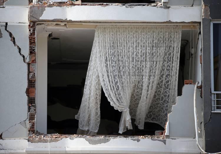 Depremin hasara neden olduğu evlerden geriye penceresiz perdeler kaldı