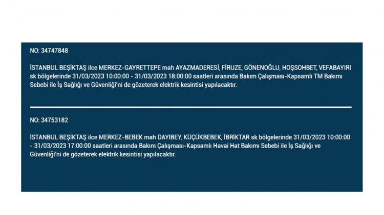 İstanbul'da 31 Mart cuma bu ilçelerde elektrikler kesilecek