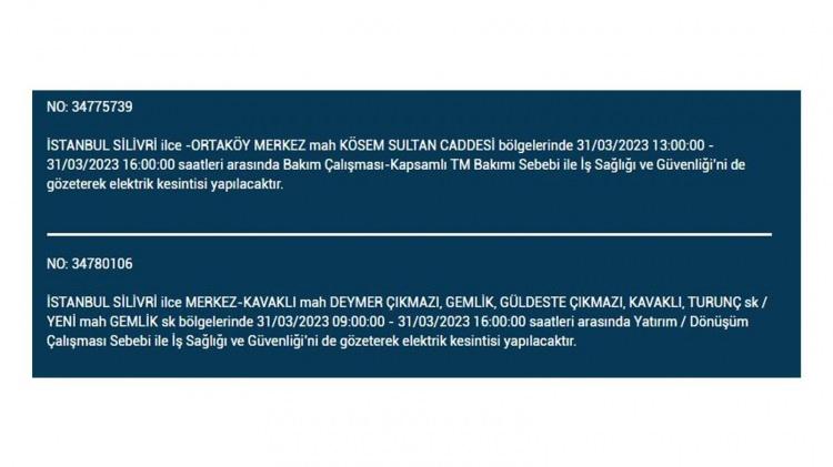 İstanbul'da 31 Mart cuma bu ilçelerde elektrikler kesilecek