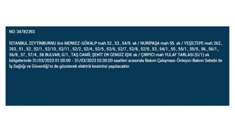 İstanbul'da 31 Mart cuma bu ilçelerde elektrikler kesilecek