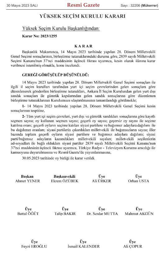 Genel seçim sonucu Resmi Gazete'de! İşte il il, parti parti resmi sonuçlar!