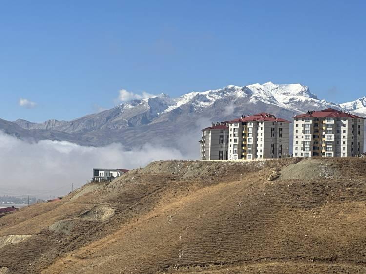 Karlı dağlarla bütünleşen bulutlar görenleri hayran bıraktı