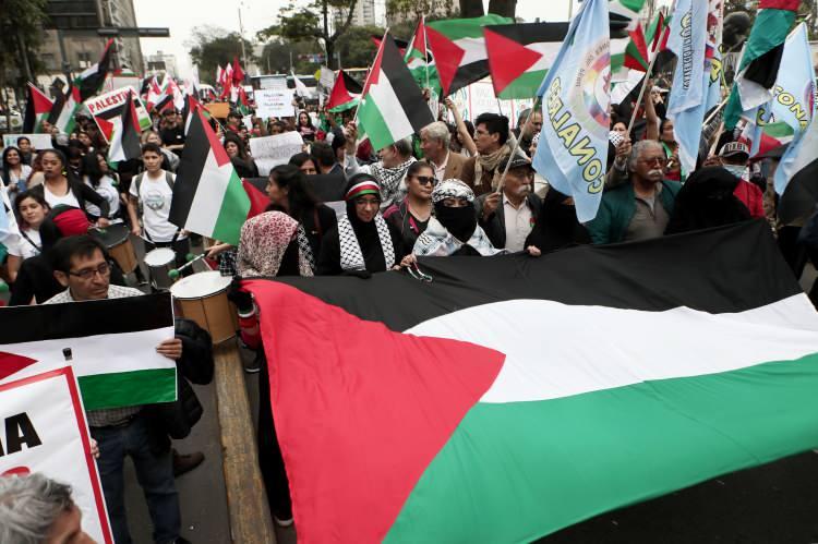 Peru'nun başkenti Lima'da yaşayan vatandaşlar Filistin'e destek gösterisi düzenledi.