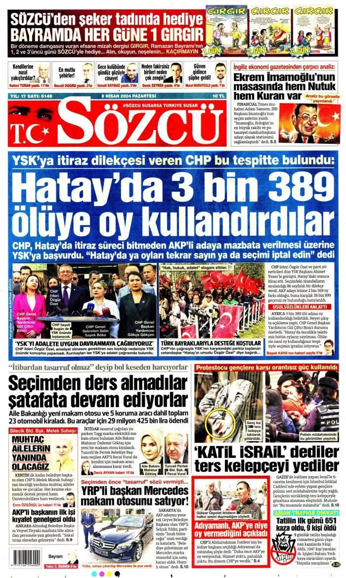 Taksim'de provokasyon: Mesele Gazze değil - 8 Nisan 2024 gazete manşetleri