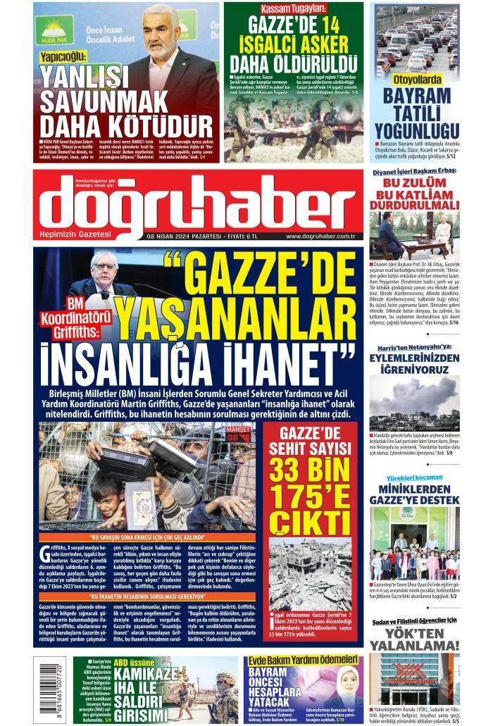 Taksim'de provokasyon: Mesele Gazze değil - 8 Nisan 2024 gazete manşetleri