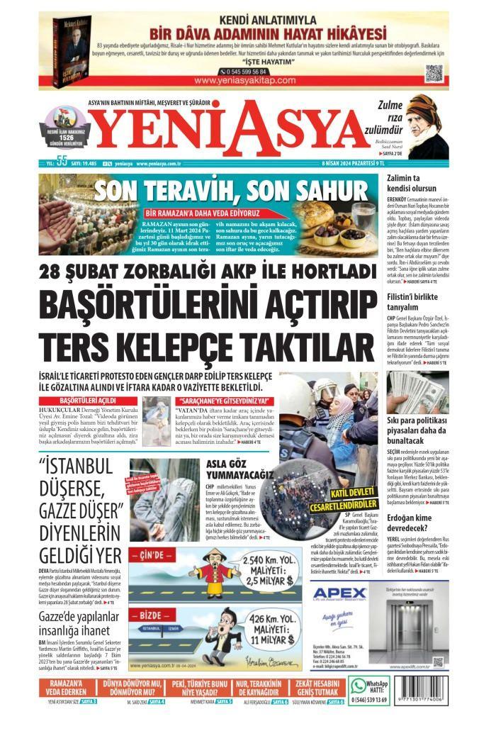 Taksim'de provokasyon: Mesele Gazze değil - 8 Nisan 2024 gazete manşetleri