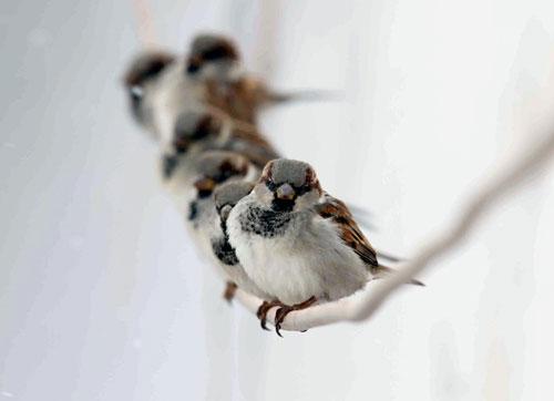 Telgrafın tellerine kuşlar mı konar? dedirten bir fotoğraf. Kar, soğuk ve sıralanmış kuşlar...