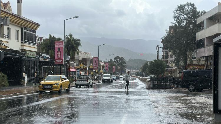 Marmaris'i sağanak vurdu: Sokaklar suyla doldu, denizin rengi değişti!