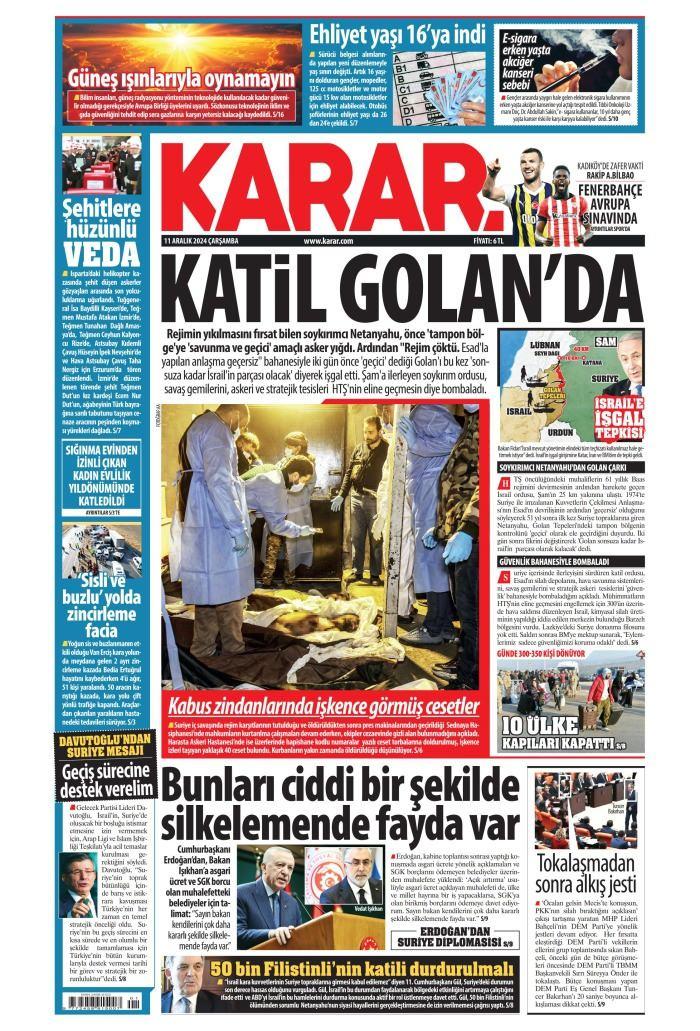 İsrail'e Golan yetmedi... Erdoğan'dan net mesaj: Seyirci kalmayız! - 11 Aralık 2024 gazete manşetleri