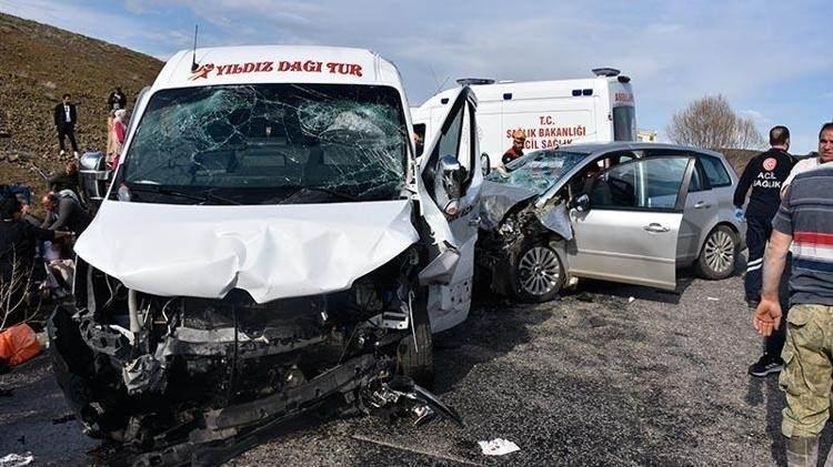Sivas'ta otomobil ile minibüs çarpıştı; 2 ölü, 17 yaralı