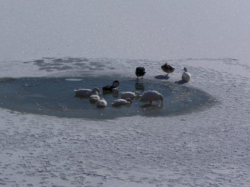 Şarkışla Gölü de aşırı soğuk nedeniyle buz tutunca, ördekler yüzmek yerine göl üzerinde yürüyerek gezdi.