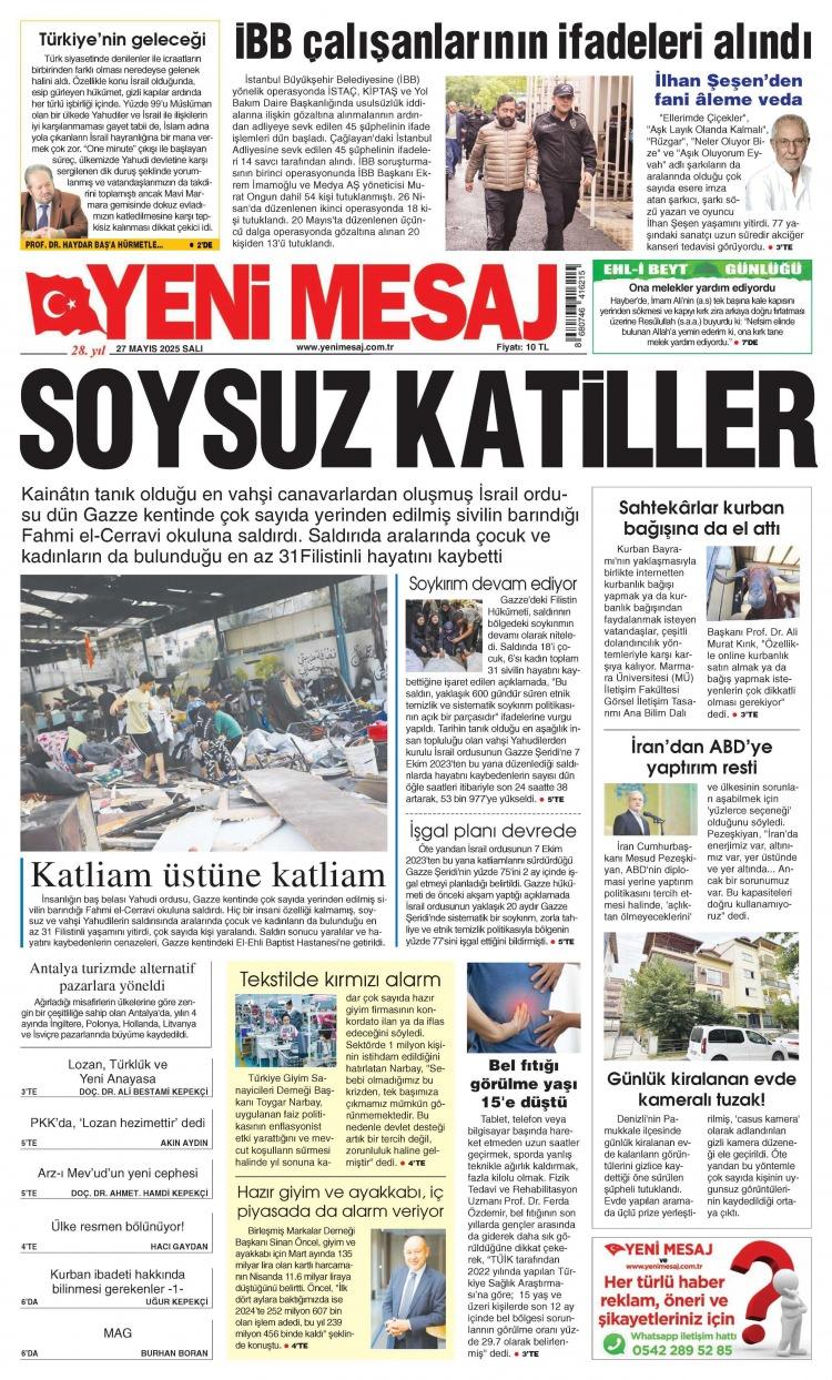 27 Mayıs Salı gazete manşetleri - 100 yıllık itiraf! ABD Büyükelçisi ne demek istedi?