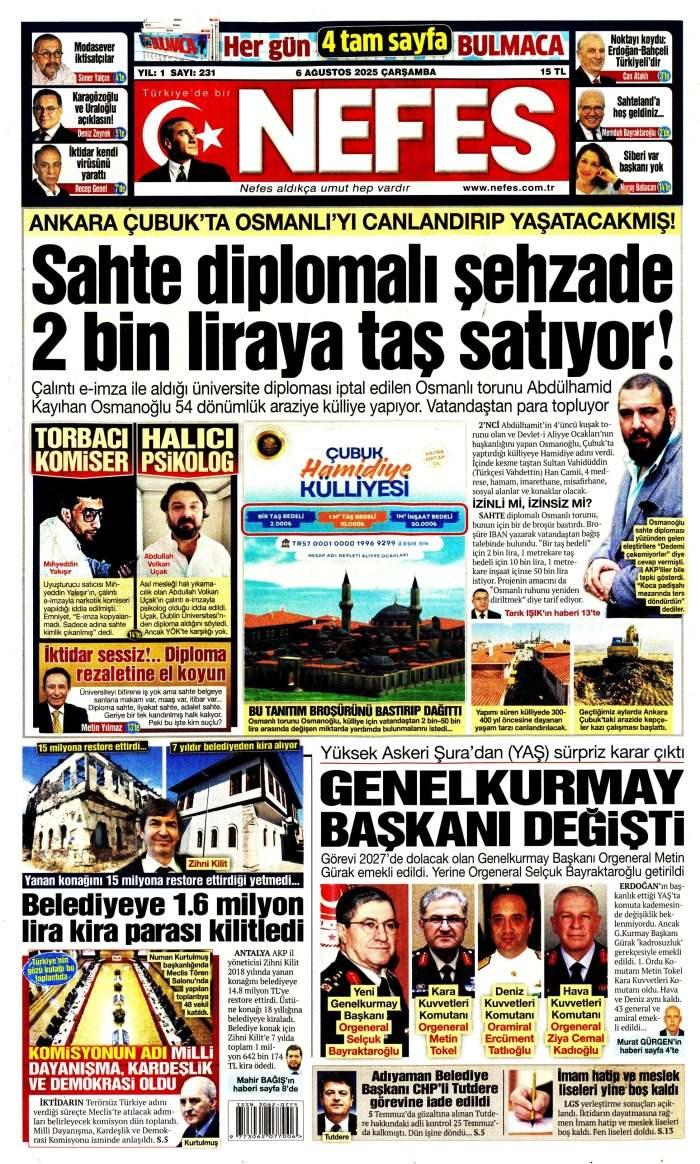 12 maddede e-imza sahteciliği - 6 Ağustos 2025 gazete manşetleri