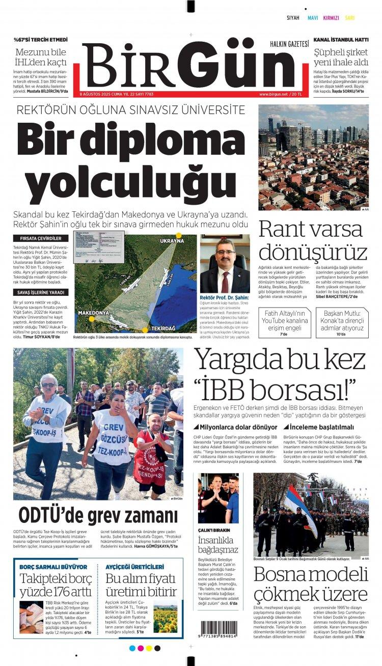 8 Ağustos Cuma 2025 Gazete Manşetleri