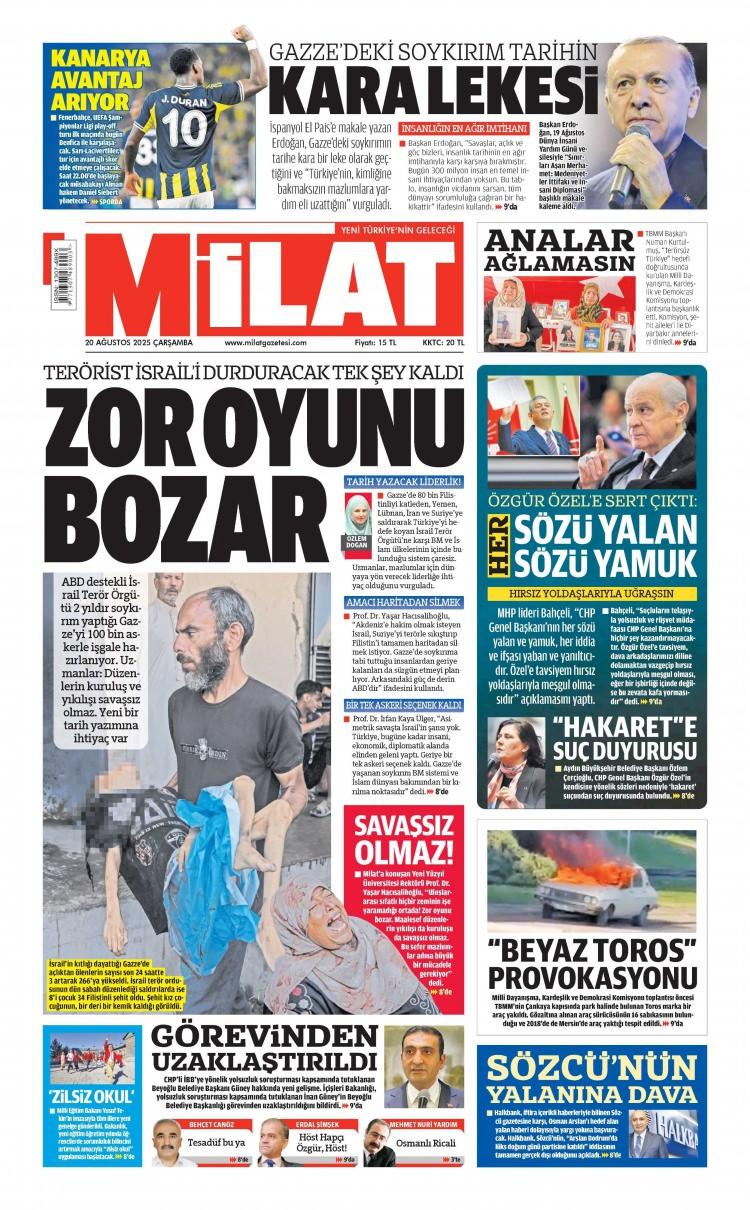 20 Ağustos Çarşamba 2025 Gazete Manşetleri