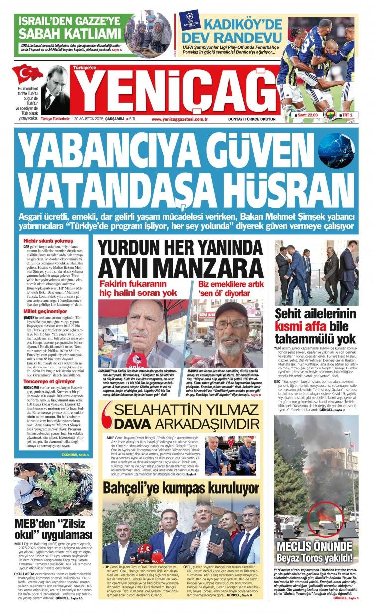 20 Ağustos Çarşamba 2025 Gazete Manşetleri
