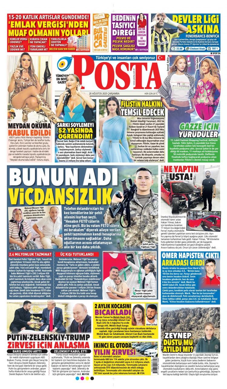 20 Ağustos Çarşamba 2025 Gazete Manşetleri