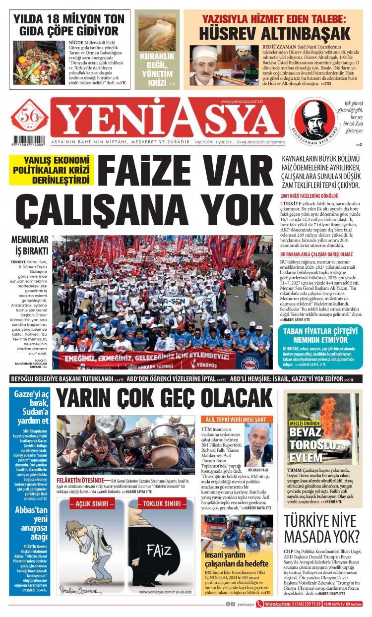 20 Ağustos Çarşamba 2025 Gazete Manşetleri