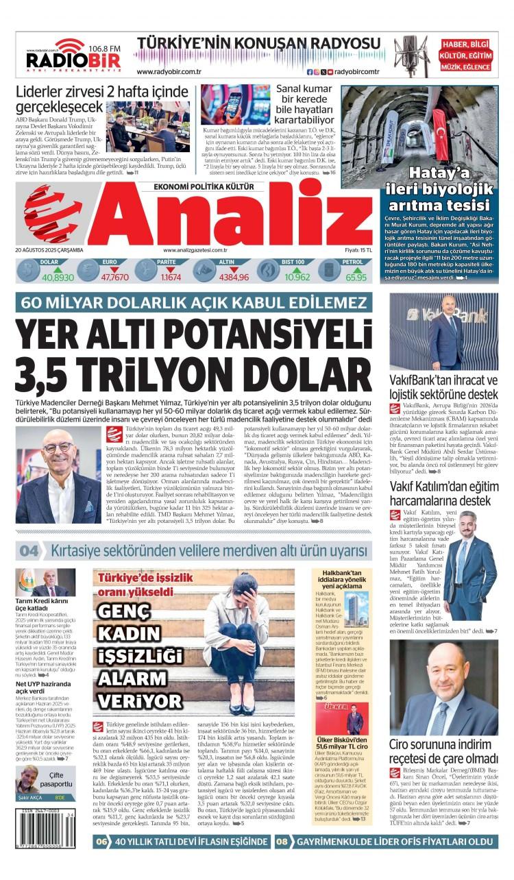 20 Ağustos Çarşamba 2025 Gazete Manşetleri