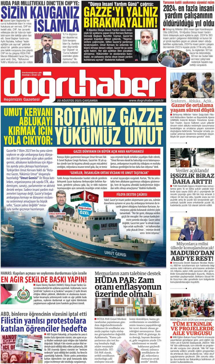 20 Ağustos Çarşamba 2025 Gazete Manşetleri