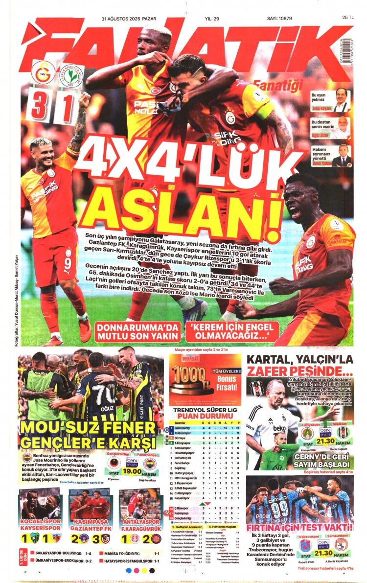 31 Ağustos Pazar 2025 Gazete manşetleri