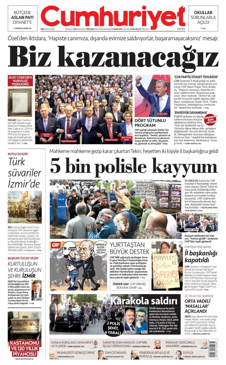 9 Eylül Salı 2025 Gazete Manşetleri