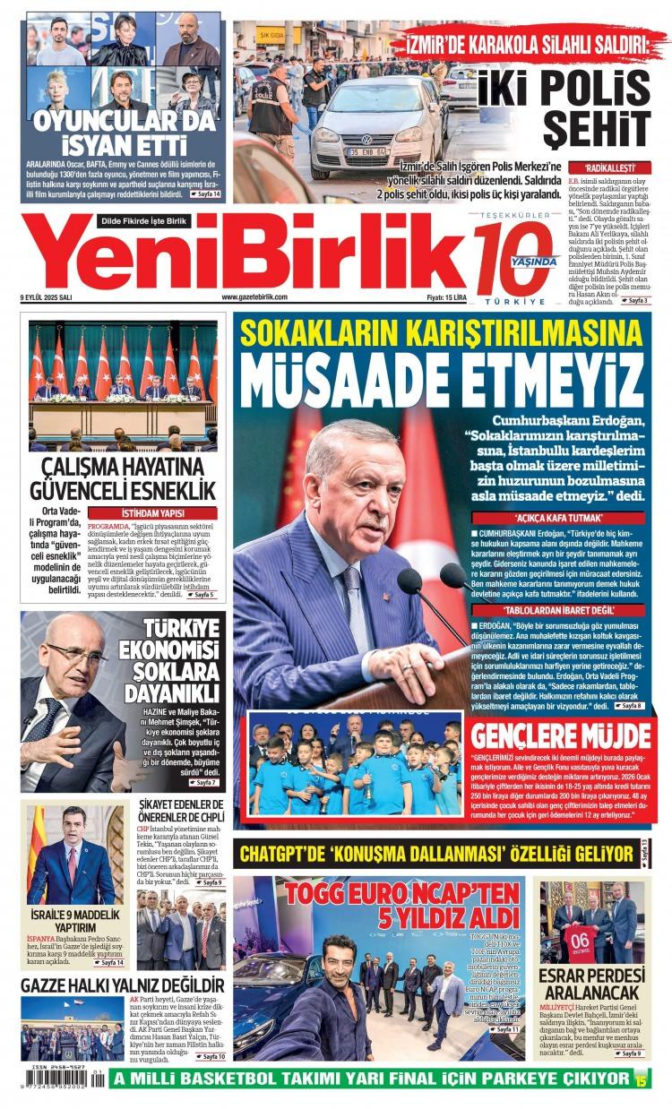 9 Eylül Salı 2025 Gazete Manşetleri