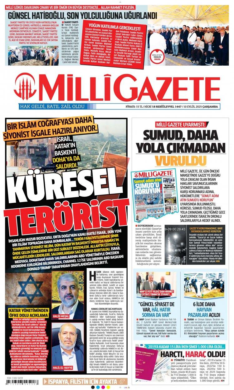 10 Eylül Çarşamba 2025 Gazete Manşetleri
