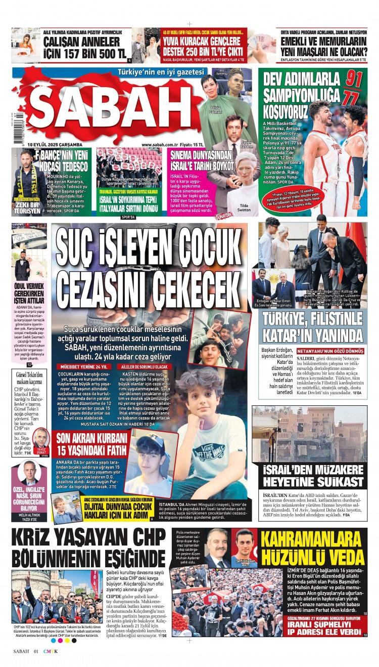 10 Eylül Çarşamba 2025 Gazete Manşetleri
