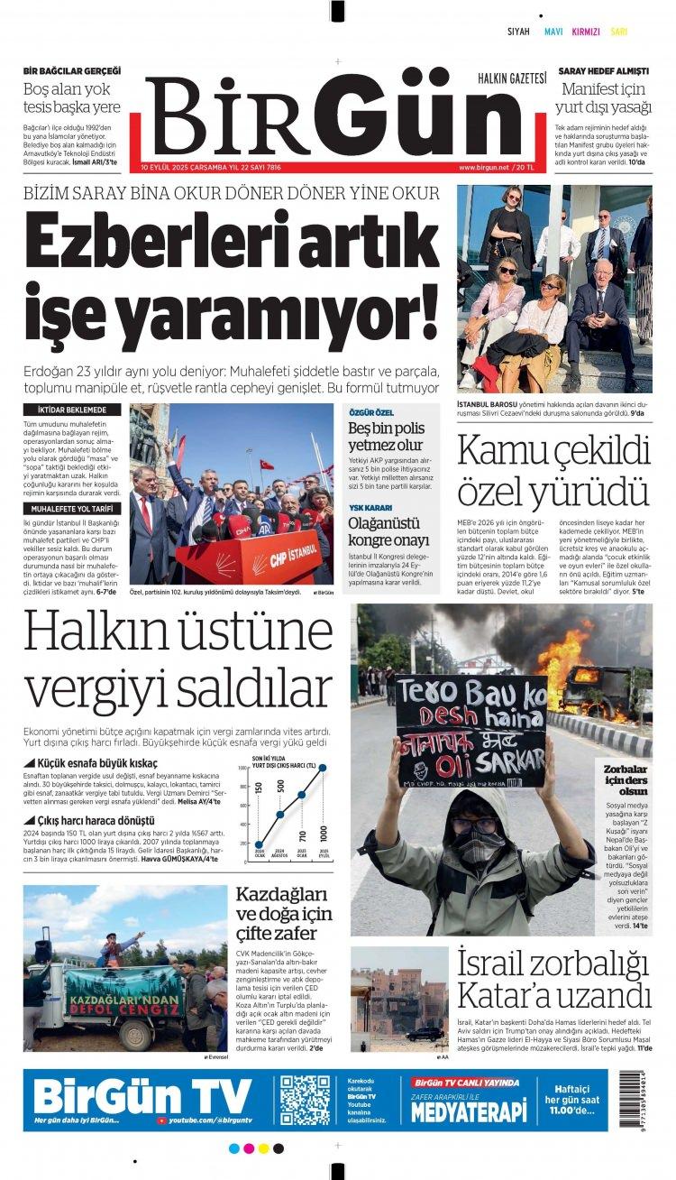 10 Eylül Çarşamba 2025 Gazete Manşetleri