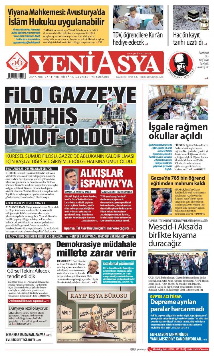 10 Eylül Çarşamba 2025 Gazete Manşetleri