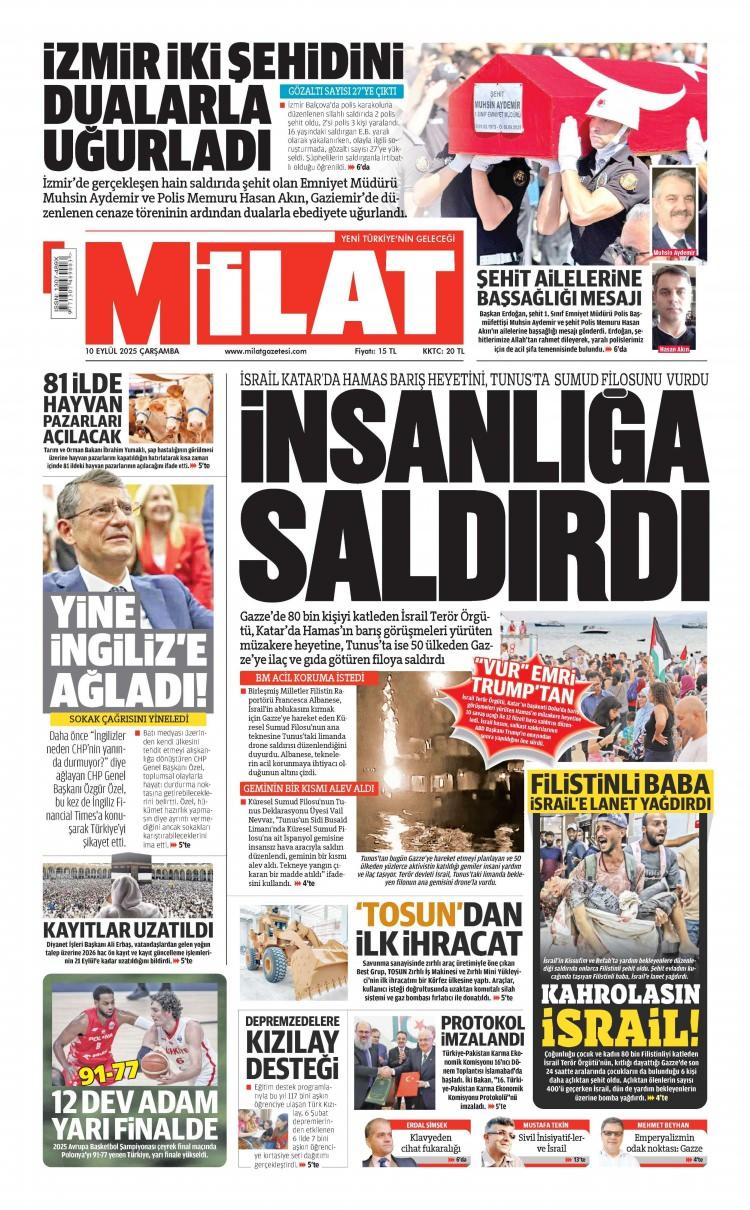 10 Eylül Çarşamba 2025 Gazete Manşetleri