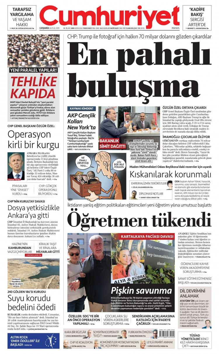 24 Eylül Çarşamba 2025 Gazete Manşetleri