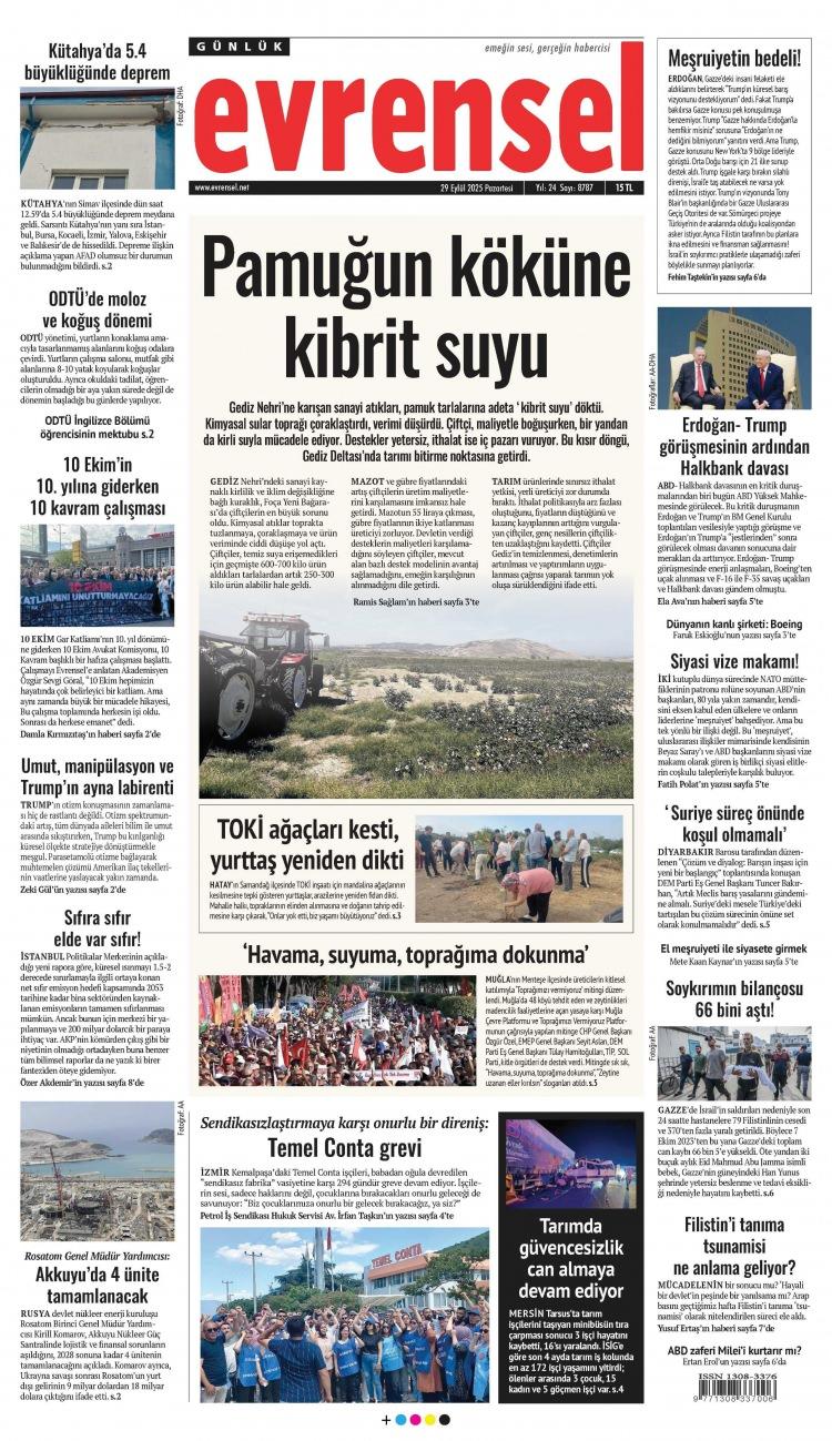29 Eylül Pazartesi 2025 Gazete Manşetleri