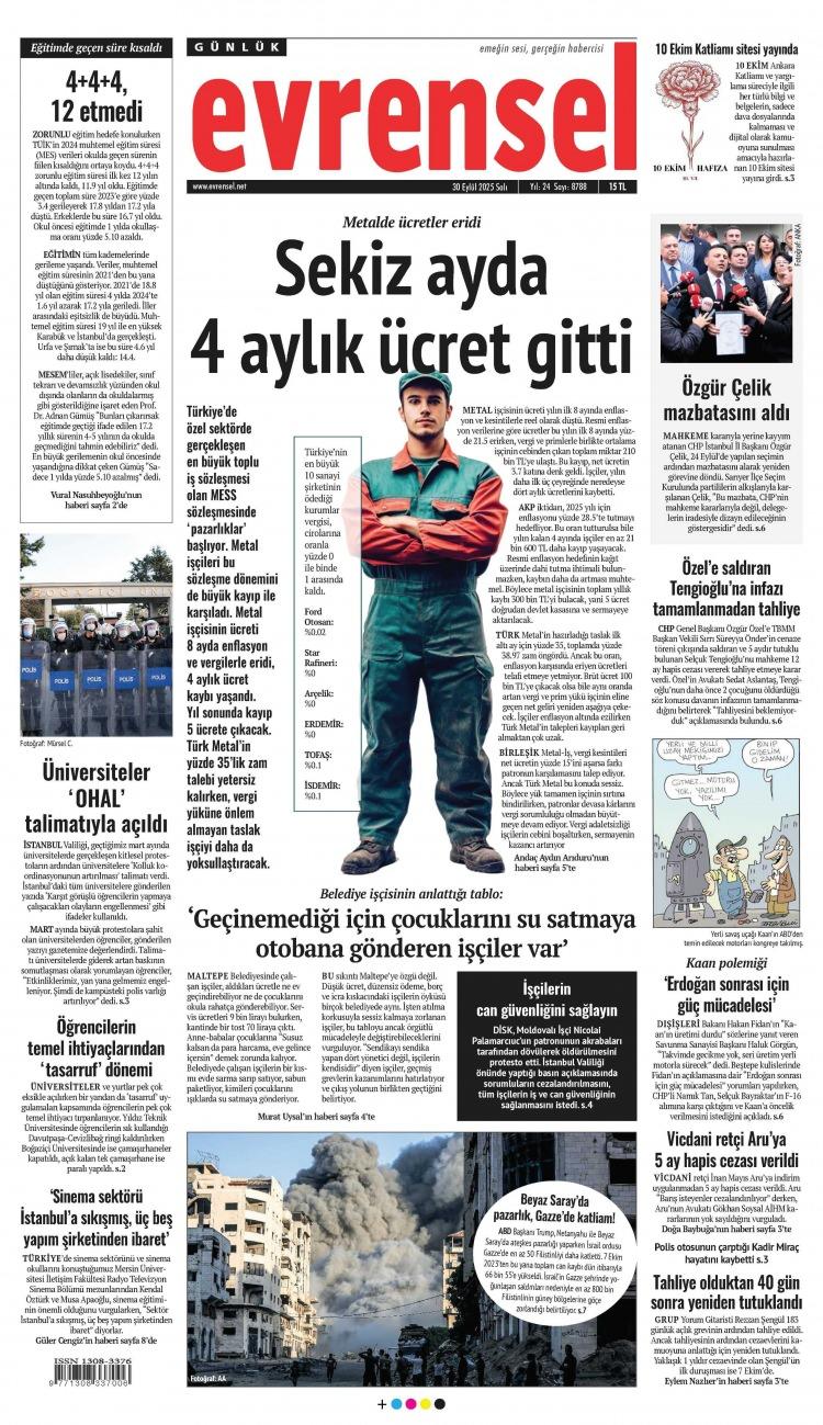 30 Eylül Salı 2025 Gazete Manşetleri