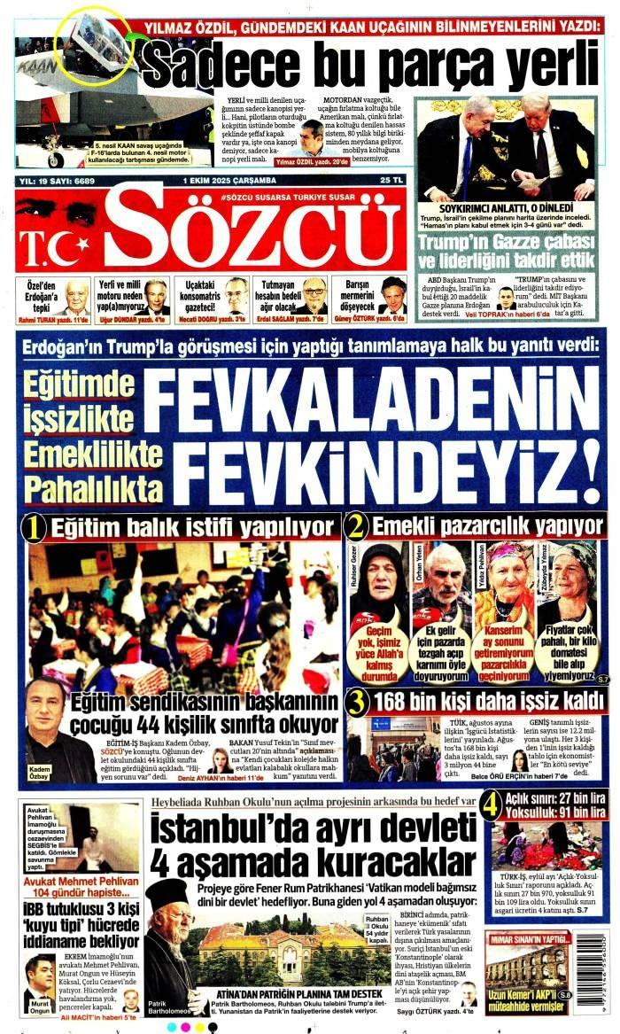 Harita kafaları karıştırdı: Ankara taslağa temkinli - 1 Ekim 2025 gazete manşetleri