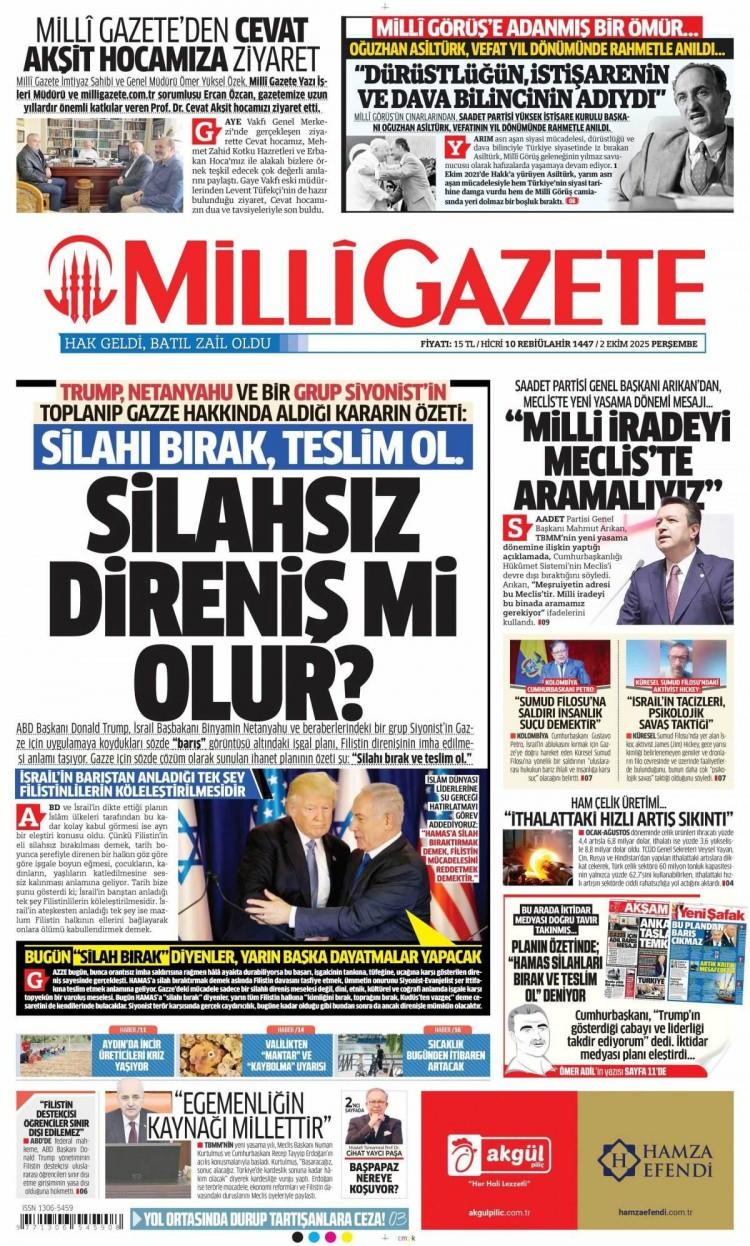 2 Ekim 2025 Perşembe - Gazete manşetleri