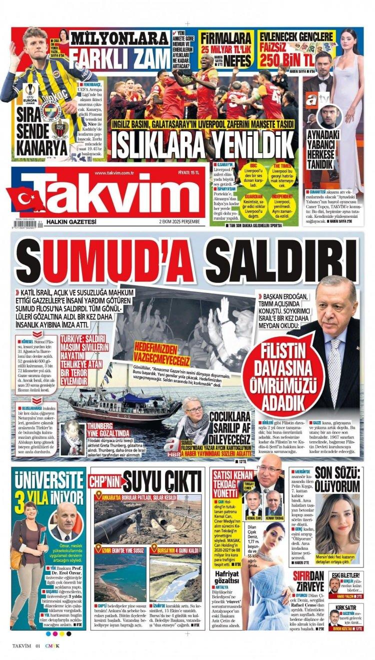 2 Ekim 2025 Perşembe - Gazete manşetleri