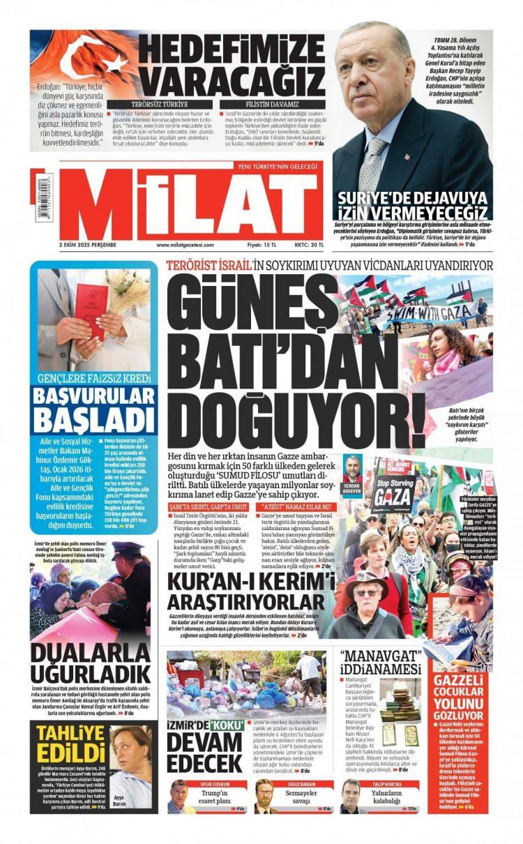 2 Ekim 2025 Perşembe - Gazete manşetleri