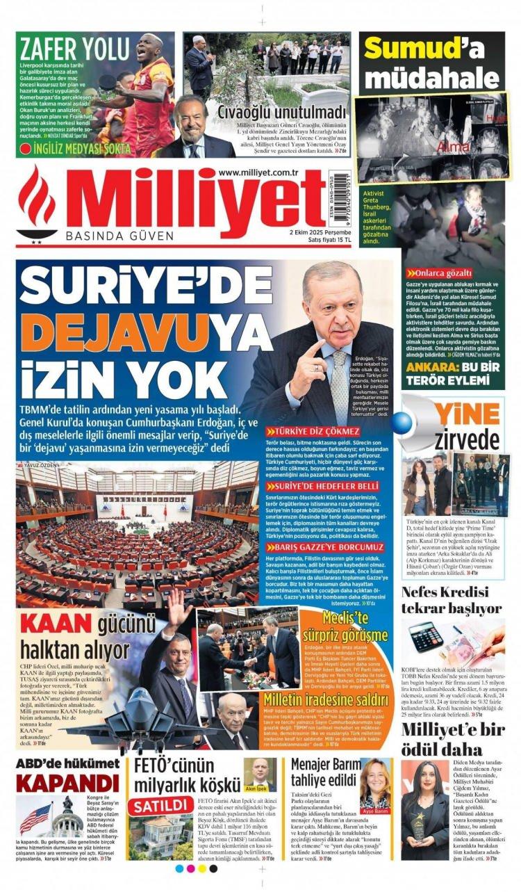 2 Ekim 2025 Perşembe - Gazete manşetleri