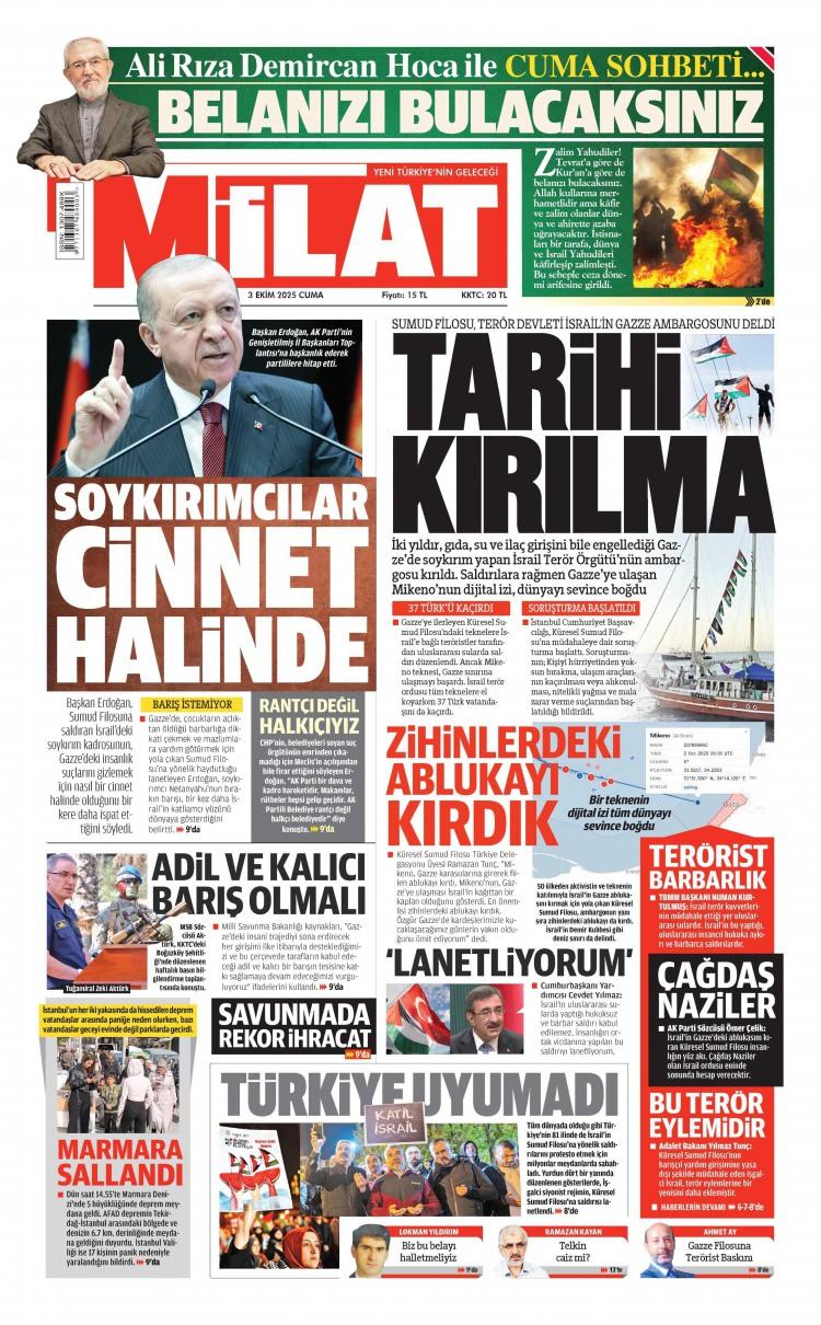 3 Ekim Cuma 2025 Gazete Manşetleri