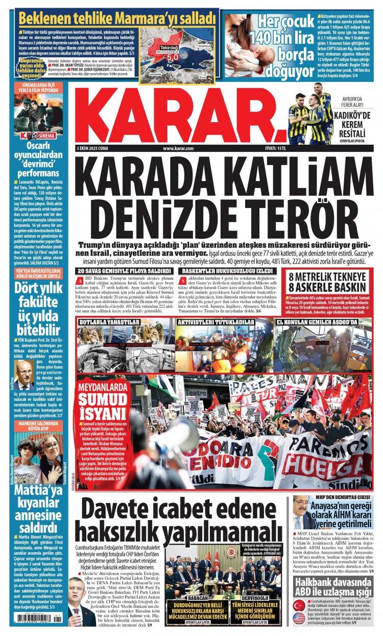 3 Ekim Cuma 2025 Gazete Manşetleri