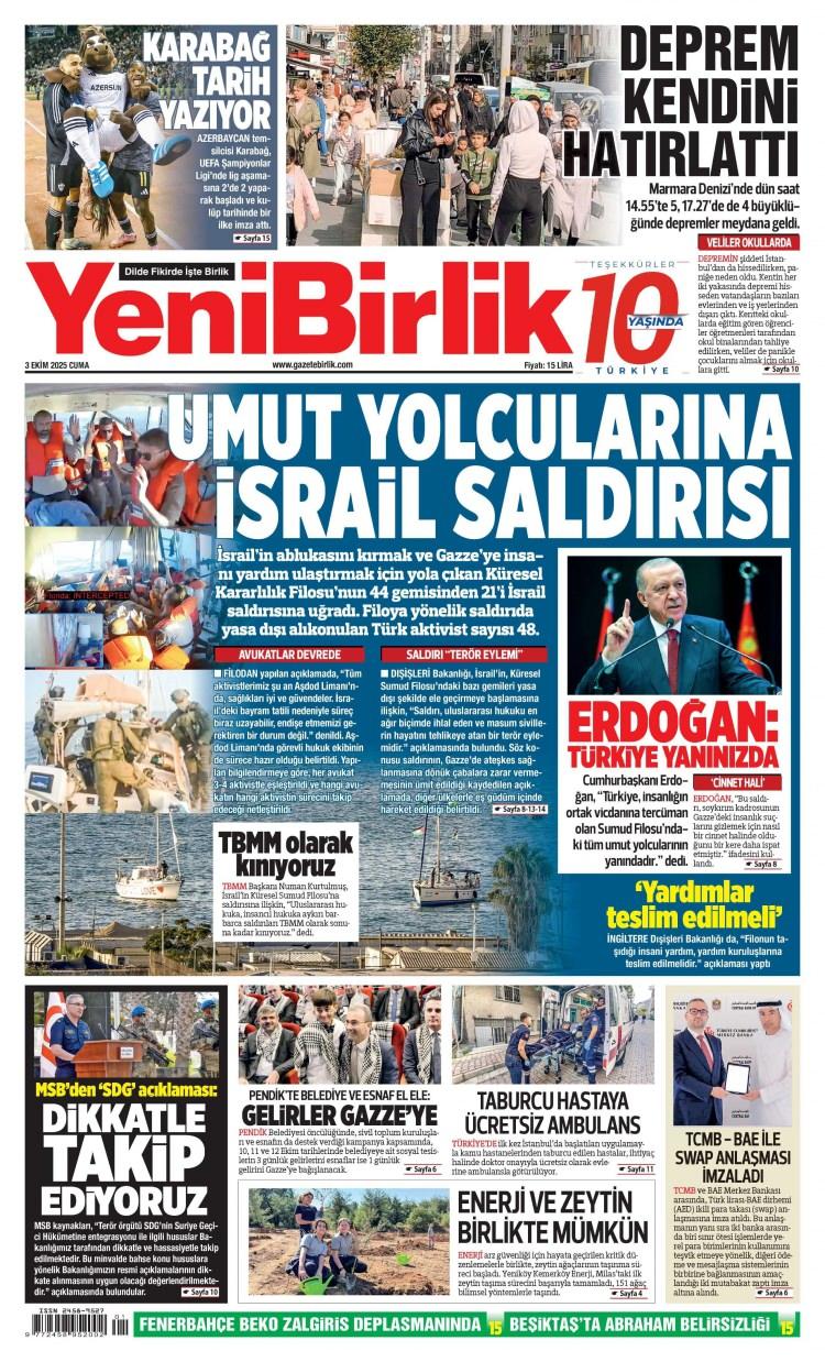 3 Ekim Cuma 2025 Gazete Manşetleri