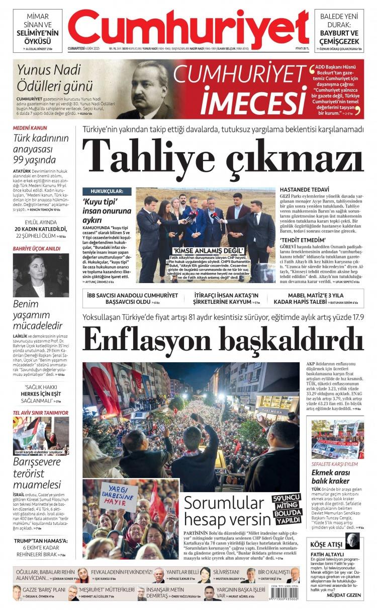 4 Ekim Cumartesi 2025 Gazete Manşetleri