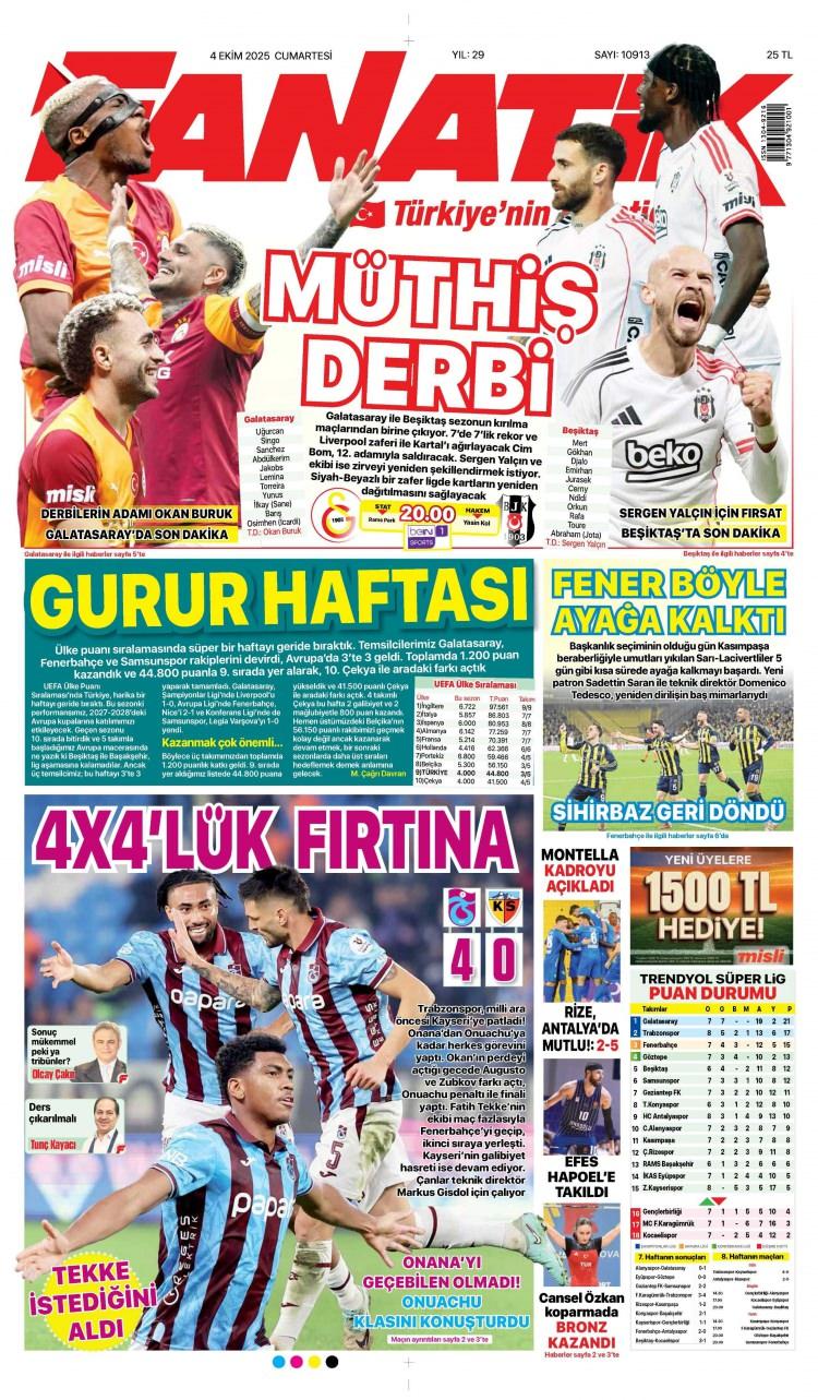 4 Ekim Cumartesi 2025 Gazete Manşetleri